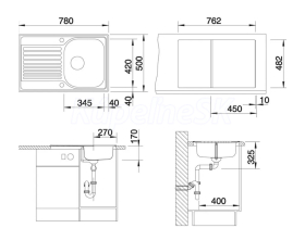 Blanco set nerezový drez 513441 TIPO 45 S Compact 78x50 cm a batéria 517720 DARAS chróm