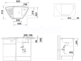 Blanco set nerezový drez 526338 TIPO 9 E a batéria 521503 KANO-S chróm