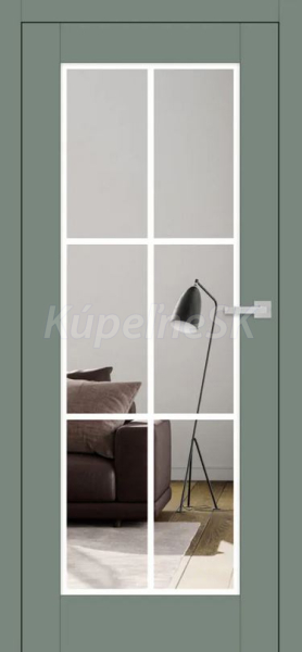 Tovar je výhradne na objednávku, bude zadaný do výroby pre jedného spotrebiteľa, je vyrobený na mieru. Variant Miskant 1 sa vyznačuje veľkým priehľadným sklom s priečkou v štýle loftu, ktorá sklo delí na šesť častí. Kombinuje praktickú funkčnosť s dekoratívnym vzhľadom, pričom zosvetlený a opticky zväčšený interiér získava nádych módneho industriálneho štýlu. KONŠTRUKCIA - Poldrážkové alebo bezpoldrážkové krídlo vyrobené rámovou technológiou STILE. - Vertikálne hranoly z MDF dosky, laminát GREKO a CPL, povlak AntiFinger, a horizontálne hranoly z lepeného dreva obloženého tenkými HDF doskami, laminát PREMIUM alebo CPL, bez povlaku AntiFinger. - Prípadne za príplatok horné rozširujúce panely zárubne. KOVANIE - Tri strieborné 2-capové pánty nastavitelné v horizontálnej rovine v poldrážkovom krídle. - Tri skryté pánty v bezpoldrážkovom krídle a dva pánty v reverznom krídle striebornej farby (volitelne za príplatok ciernej farby); pánty sa dodávajú a sú zahrnuté v cene zárubne. - Jazýčkový zámok v poldrážkovom krídle a magnetický zámok v bezpoldrážkovom a reverznom krídle: na klúč, zámkovú vložku, úsporný alebo s blokádou, striebornej farby; voliteľne za príplatok čierny magnetický zámok. PRESKLENIE - tvrdené mliečne alebo číre sklo s hrúbkou 4 mm. - možnost zmeny strany zasklenia na RUB (štandardné zasklenie LÍCE). - Čierne línie so šírkou (hrúbkou) 18 mm. - Dvere Miskant 1,3,5 - sklo Číre - Dvere Miskant 2,4,6 - sklo Matné Upozornenie: zobrazené obrázky môžu byť ilustratívne!