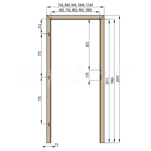 Vyberte si šírku Záklapky zárubne: