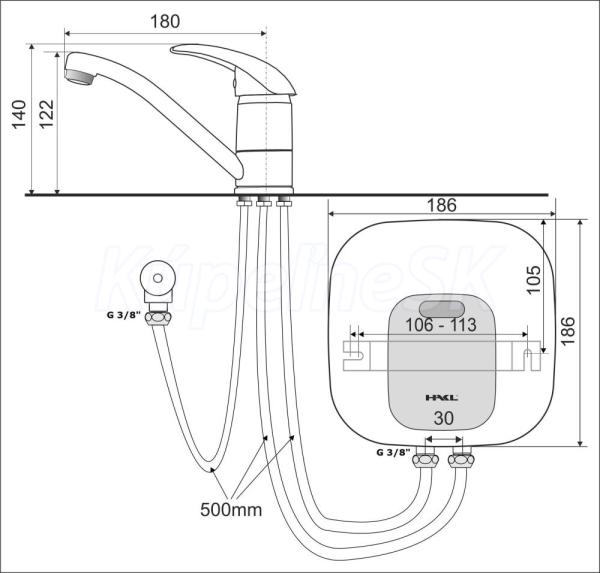 Pre jednoduchší nákup je el. prietokový ohrievač vody HAKL PL SET dodávaný spolu s vodovodnou beztlakovou stojankovou pákovou batériou HAKL, s dĺžkou výtokového ramienka 16 cm.