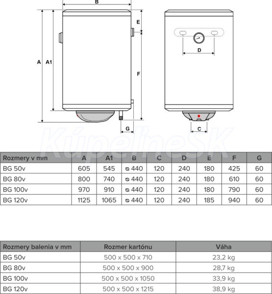 ZÁKLADNÉ VLASTNOSTI inštalácia možná iba vývodmi smerom dole ochrana oceľovej nádoby dvojitým titánovým smaltom vynikajúce tepelno-izolačné vlastnosti nádoby tepelná poistka zabraňujúca prehriatiu výhrevnej špirály mrazuvzdorná poistka proti zamrznutiu vody v zásobníku anódová tyč predlžujúca životnosť zásobníka nastaviteľný termostat so signalizáciou ohrevu poistný ventil so spätnou klapkou ako súčasť balenia univerzálna konzola na zavesenie ohrievača     POPIS VÝROBKU Elektrické zásobníkové ohrievače HAKL BG 100v s objemom vody 100 litrov. Tieto ohrievače patria do produktovej rady tlakových zásobníkov s oceľovou nádobou. Doplnkové označenie „V“ (BGv), znamená vertikálne (zvislé) prevedenie s valcovitým dizajnom, preto regulácia teploty ohrevu vody a pripojovacie vývody ohrievača sa nachádzajú na spodnej strane krytu. Súčasťou balenia zásobníkových ohrievačov vody HAKL BGv je aj poistný ventil a univerzálna konzola na zavesenie ohrievača.   Dlhú životnosť zásobníka zaručuje dvojitá vrstva titánového smaltu a zabudovaná anódová tyč. Sériovo montovaná tepelná poistka zabezpečuje vyšší stupeň ochrany špirály proti prehriatiu v krízových situáciách. Funkcia mrazuvzdornej poistky zabraňuje zamrznutiu vody v ohrievači a tým aj poškodeniu nádoby. Takto nastavený termostat pri bežnej teplote ohrev špirály nezopne, ale v prípade výrazného poklesu teploty v miestnosti bezpečne ochráni ohrievač pred zamrznutím.      ZAPOJENIE OHRIEVAČA Ilustračný obrázok zapojenia zásobníkového ohrievača HAKL BG 100v do vodovodného systému. Výrobca odporúča inštaláciu vypúšťacieho ventilu, pri údržbe je veľmi jednoduché vypustenie vody z ohrievača. Súčasťou balenia je iba poistný ventil!       SERVISNÝ BALÍK:PLUS Na tento výrobok sa vzťahuje SERVISNÝ BALÍK:PLUS. Rozšírený záručný a bezplatný servis je automaticky zahrnutý v cene výrobku a za vybrané opravy zákazník neplatí. Podrobné informácie nájdete na hakl.sk/servis/servisne-baliky.sk      TABUĽKA VHODNOSTI POUŽITIA Pre jednoduchší výber vhodného modelu zásobníkového ohrievača vody výrobca pripravil prehľadnú tabuľku vhodnosti použitia. Zoradená je podľa objemu zásobníka a typu využitia - náročnosti na spotrebu vody. Elektrické zásobníkové ohrievače vody zohrievajú vodu pomocou 2 kW výhrevnej špirály. Takýto nízky príkon je umožnený vďaku tomu, že vodu zohrievajú akumulačne do zásobníka. Ich hlavnou výhodou je pripojenie k elektrickej sieti pomocou zástrčky a nízkym istením. Na rozdiel od prietokových ohrievačov je ale možné použiť iba obmedzené množstvo teplej vody v zásobníku. Ohrev vody v zásobníku je možné nastaviť na požadovanú teplotu. Čím vyššia teplota tým viac vody je možné zriediť so studenou vodou a dosiahnuť tak celkový väčší objem vody. Treba si ale uvedomiť, že nastavená vyššia teplota znamená aj vyššie prevádzkové náklady. Pri výbere zásobníkového ohrievača je nutné brať ohľad na spôsob využitia. Napríklad pri sprchovaní je nutné zohriať až trojnásobné množstvo vody ako pri umytí rúk, preto je potrebné zvoliť správny objem zásobníkového ohrievača vody.   Poznámka:    Hodnoty v tabuľke sú orientačné, päť symbolov ••••• určuje maximálnu vhodnosť použitia, symbol x určuje nevhodnosť výrobku. Jednoduchý výber modelov ohrievačov vody podľa objemu zásobníka je možné zvoliť v hlavnej kategórii pomocou filtračného nástroja.