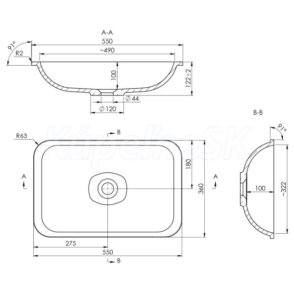 | Typ umývadla | Zápustné umývadlo |