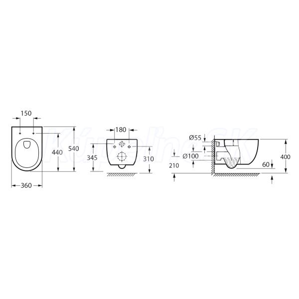 >> WC-Bidety-dosky-Pisoár >> WC závesné >> Bruckner GLANZ závesná WC misa, Vortex Rimless, 36x52,5cm, biela