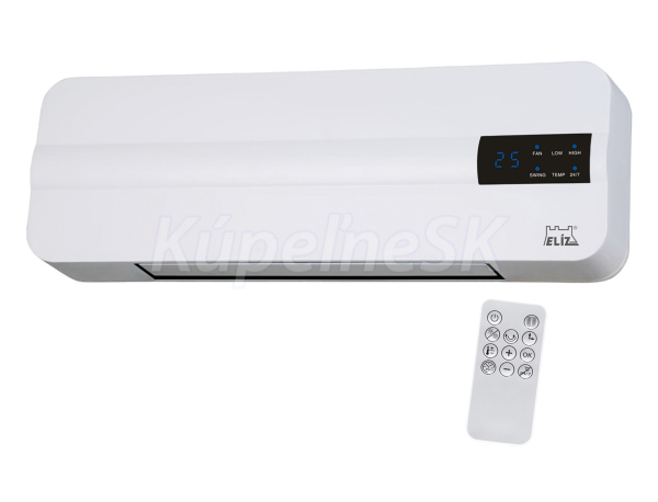 ELÍZ EWH 200 ERP Vykurovanie | Nástenné ohrievače Podstropný nástenný ohrievač vzduchu, 1000/2000 W, týždenný časovač, detekcia otvoreného okna, ventilátor, LCD displej, diaľkové ovládanie, PTC keramické teleso, snímanie teploty miestnosti. Nástenný ohrievač vzduchu ELÍZ EWH 200 ERP určený na vykurovanie miestností predstavuje kombináciu ohrevu vzduchu a ventilátora. Ohrievač poskytuje prepínateľný výkon 1000 / 2000 W, nastavenie týždenného časovača, senzor otvoreného okna, alebo možnosť zapnutia len ventilátora. Funkciu ventilácie vzduchu určite oceníte počas letných dní.