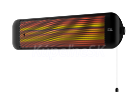ELÍZ EQH 12 B Nástenný kúpeľňový infražiarič, výkon 600/1200 W, krytie IP 24, celokovové telo, elegantná čierna farba, prepínanie výkonu, tichá prevádzka, kremíkové trubice. Nástenný kúpeľňový infražiarič ELÍZ EQH 12 B vás zaujme svojim elegantným dizajnom v čiernej farbe a celokovovým telom. Ohrievač je určený na použitie v domácnosti a jeho použitie je vhodné aj v kúpeľni a vlhkých priestoroch, vďaka ochrane proti striekajúcej vode IP 24. Ohrievač disponuje dvomi úrovňami nastavenia výkonu 600/1200 W a vďaka sálavému teplu (infračervené žiarenie) vás zahreje počas krátkej chvíle. Nastavenie výkonu sa vykonáva pomocou poťahovacej šnúrky. Možnosťou je tiež nastavenie sklonu ohrievača do vami požadovanej polohy - sklon do 45°. Účinné sálavé teplo infražiariča je smerované priamo na objekty pred ohrievačom a neohrieva tak zbytočne okolitý vzduch, kde nie je potrebné. Dokáže vytvoriť tepelnú pohodu, v ktorej sa budete cítiť príjemne.Vykurovací objem do 25 m3. Vlastnosti: Dve úrovne výkonu: 600 / 1 200 W Prepínanie výkonu Moderný dizajn v elegantnej čiernej farbe Celokovové telo ohrievača Quartzové (kremíkové) trubice Sálavé teplo - infračervené žiarenie Vysoká účinnosť ohrevu Nastavenie sklonu do 45° Bezhlučná prevádzka Vykurovací objem do 25 m3 Napájací kábel:  1,4 m Návod - EQH 12 W/B (SK/CZ)
