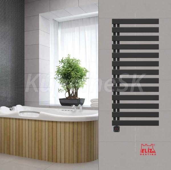 ELÍZ EBR 800 NP-B Elektrický radiátor, príkon 800 W, čierna matná farba, zabudovaná ohrievacia tyč, elektronické ovládanie teploty, krytie IP44, LED displej, časovač, automatické vypnutie pri prehriatí. Elektrický radiátor ELÍZ, model EBR 800 NP-B je radiátor, ktorý premieňa nádheru klasických línií na trvalú krásu. Radiátor má ploché lamely, umiestnené horizontálne na hlavnom nosnom profile. Je vyvinutý pre tých, ktorí túžia po radiátore, ktorý premení nádheru klasických línií na trvalú krásu vo svojich kúpeľniach alebo kuchyniach. Jeho široký tvar povrchu umožňuje väčší prenos tepla do okolia a zaisťuje optimálnu účinnosť. Jeho nádherný symetrický dizajn plochých lamiel dodá vašim obytným priestorom moderný vzhľad. Model EBR 800 NP-B je priekopníkom symetrického dizajnu, ktorý ponúka jednoduché používanie, jednoduché čistenie a možnosť používať ho bez potreby akéhokoľvek ďalšieho príslušenstva. Elektrický radiátor EBR je tradičné riešenie pre vykurovanie a sušenie uterákov, ktoré je nezávislé od prívodu vody z centrálneho vykurovania. Koncepcia dizajnu BLACK & WHITE. Model EBR 800 NP ponúkame vo farbe: EBR 800 NP-W - biela lesklá, alebo EBR NP-B - čierna matná. Elektrický radiátor EBR 800 NP-B poskytne komfortný zdroj tepla pre vašu kúpeľňu a zaujme moderným dizajnom. Výkon elektrického telesa 800 W pohodlne vyhreje kúpeľňu do 12 m2 a viete ho využit aj ako praktický sušiak uterákov. Radiátor je vybavený dotykovým ovládacím panelom s LED displejom. Splňa normy na energetickú účinnosť ohrevu. Pomocou dotykového ovládania viete jednoducho nastaviť požadovanú teplotu a časovač. Nastavenie teploty sa vykonáva v rozsahu 5-30 °C. Radiátory série EBR sú dodávané so zabudovanou ohrievacou tyčou a naplnené nemrznúcou zmesou do -5°C. Súčasťou výrobku je taktiež prívodný napájací kábel s koncovkou na 230V. Radiátor je v rámci bezpečnosti vybavený automatickou ochranou proti prehriatiu. Výrobok je určený pre inštálaciu na stenu (držiaky na uchytenie na stenu sú súčasťou balenia).Pri prerušení a obnovení elektrického napájania sa zariadenie vypne a ostane v režime OFF (vypnuté). Vlastnosti: Výkon: 800 W Čierna matná farba Moderný dizajn plochých lamiel Krytie IP 44 - bezpečné použitie v kúpeľni Dotykový ovládací panel s LED displejom Presný elektronický termostat Nastavenie teploty 5 - 30 °C Časovač Protimrazová ochrana +7 °C Bezpečnostná poistka proti prehriatiu Jednoduché ovládanie Bezhlučná prevádzka Napájací kábel s koncovkou na 230V: 1,2 m