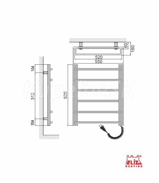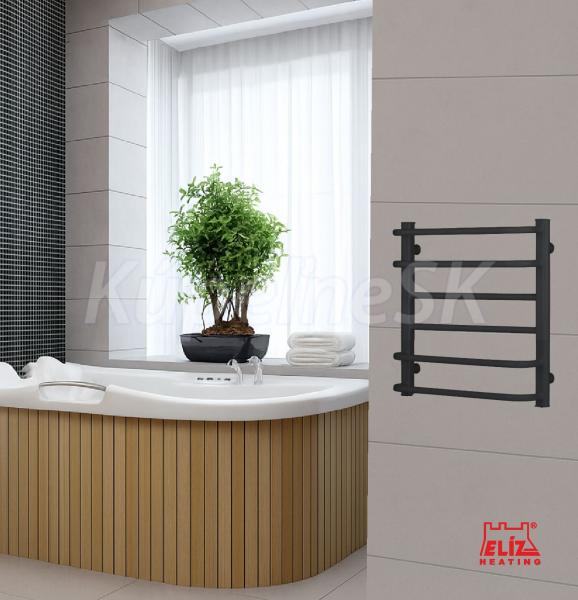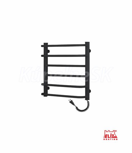 ELÍZ EBS 6/55 AF-B Vykurovanie | Infrapanely, kúpeľňové radiátory a sušiaky Elektrický sušiak, príkon 109 W, čierna matná farba, zabudovaný ohrievací vodič, mechanické ovládanie teploty, krytie IP44, automatické vypnutie pri prehriatí. Elektrický sušiak ELÍZ, model EBS 6/55 AF-B