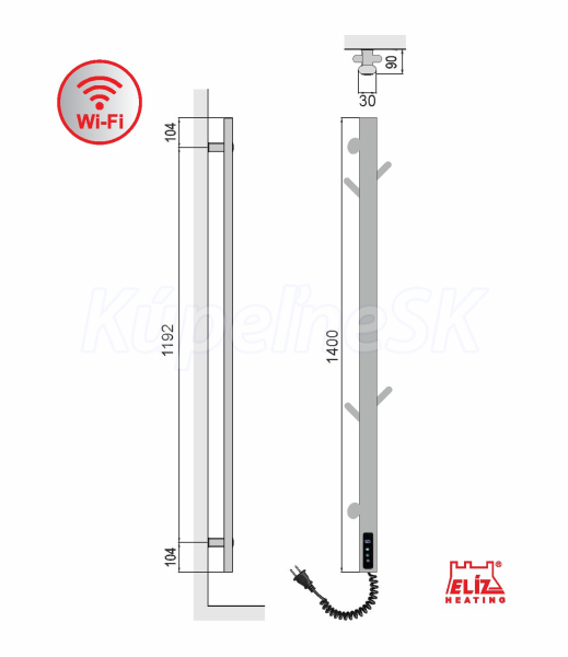 ELÍZ EBS 160 KI-W WIFI Vykurovanie | Infrapanely, kúpeľňové radiátory a sušiaky Elektrický sušiak, príkon 160 W, biela lesklá farba, zabudovaný ohrievací vodič, elektronické ovládanie teploty s funkciou WIFI, časovač zaponutia/vypnutia, krytie IP44, automatické vypnutie pri prehriatí. Elektrický sušiak ELÍZ, model EBS 160 KI-W WIFI