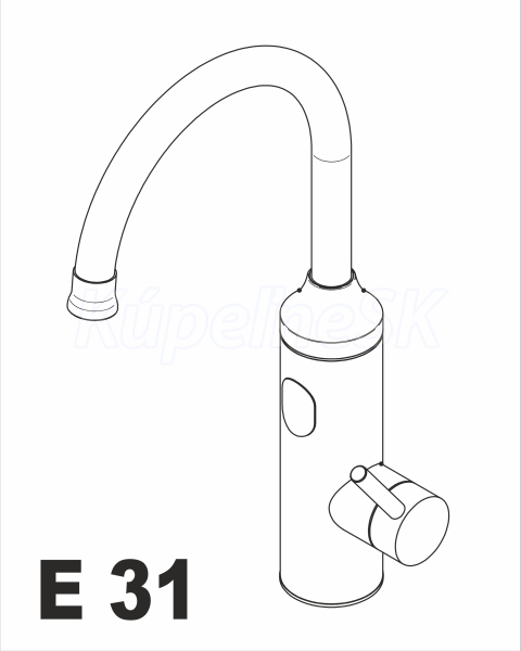ELÍZ E 31 Prietokové ohrievače | Batéria s elektrickým ohrevom Vodovodná batéria s elektrickým ohrevom 3,3 kW, chromové kovové ramienko otočné o 360°. Stojanková vodovodná batéria E 31 s elektrickým ohrevom 3,3 kW je vhodná pre inštaláciu na umývadlo alebo drez v domácnosti, kancelárií, chate, garáži a podobne. Model E 31 spája funkciu ohrievača vody a vodovodnej batérie do jedného celku. Je vhodná na zapojenie do elektrickej zásuvky nad aj pod umývadlo alebo kuchynskú linku bez toho, aby ste museli riešiť nové otvory pre elektrinu.
