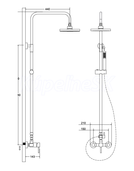 Set obsahuje batériu, hlavovú sprchu s držiakom, ručnú sprchu a hadicu