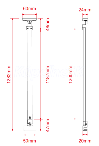 Rohová rozperná tyč pre optimálnu stabilitu a bezpečnosť sprchovej zásteny. Tyč má max. dĺžku 120 cm, ale dá sa jednoducho zakrátiť na Vami požadovaný rozmer. Ideálna pre stabilnú montáž sprchových zásten s hrúbkou skla 8 mm . Tyč dodávame v štyroch farbách (chróm, black, gold a grafit). Ideálne sa hodí k našim zástenám LAGOS NEW, keď požadujete z dôvodu montáže rohovú rozpernú tyč. Túto tyč je možné použiť k akejkoľvek zástene s hrúbkou skla 8 mm.