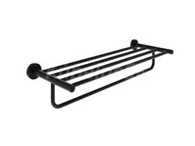Nástenná polica s hrazdou na uteráky a osušky Kona. V čiernom matnom prevedení.