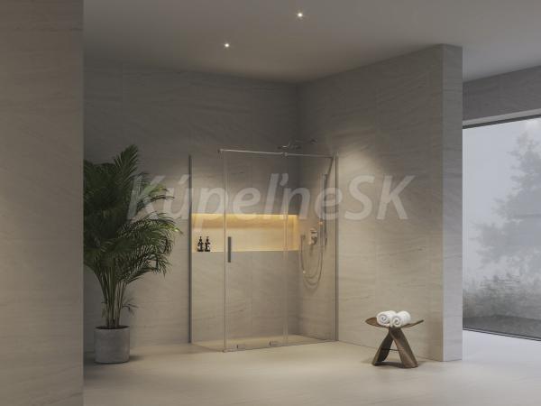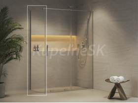 Pevná stena Roll v prevedení lesklý chróm a s výplňou z číreho skla s ochrannou vrstvou Ravak AntiCalc®. Otočiteľný výrobok pre ľavý aj pravý variant.