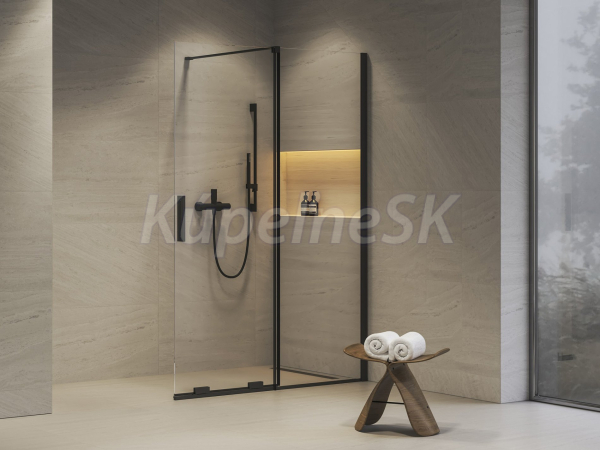 Dvojdielny sprchovací kút Walk-In Roll s otvoreným vstupom z jednej strany, s posuvnou zástenou. V čiernom prevedení a s výplňou z číreho skla s ochrannou vrstvou Ravak AntiCalc®. Otočiteľný výrobok pre ľavý aj pravý variant.
