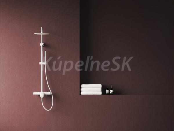 Sprchový stĺp Spring netermostatický, posuvný, so sprchovým setom. V bielom matnom vyhotovení.