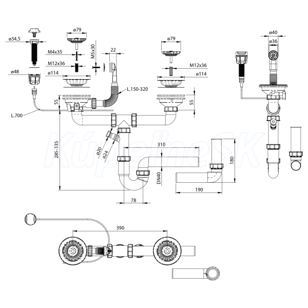 >>  Obchod s inštalačným materiálom  >>  Sifóny - Výpuste - Vpuste  >>  Sifón drezový  >>  Bruckner Odtoková súprava pre drez s dvoma výpusťami 155.129.0