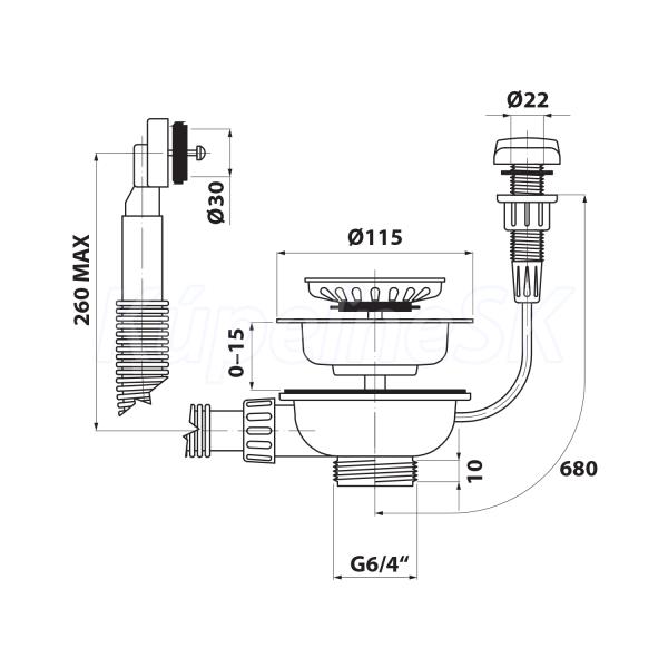 >> Obchod s inštalačným materiálom >> Sifóny - Výpuste - Vpuste >> Výpusť umývadlová >> Bruckner Nerezová výpusť drezu 6/4" s prepadom a ovládaním, nerez