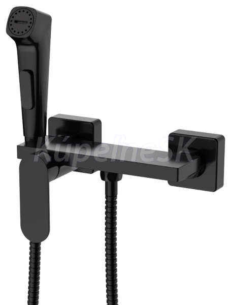 Aqualine nástenná bidetová batéria so Stop sprškou a poličkou, Čierna matná