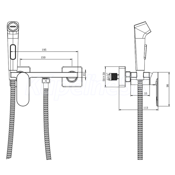 >> Batérie vodovodné >> Bidetové batérie >> Aqualine nástenná bidetová batéria so Stop sprškou a poličkou, Čierna matná