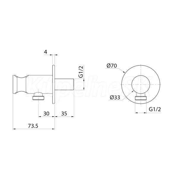 Sapho držiak sprchy guľatý, pevný, s vyústením, Zlatý matný