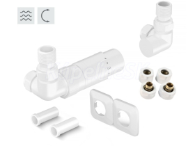 >>  Radiátory-Kotle-Kúrenie-Komíny  >>  Kúpeľňové a designové radiátory  >>  Pripojenie kúpeľňových radiátoro  >>  HOPA PRIME termostatická sada, univerzálny rohový ventil s plastovou rozetou Biela