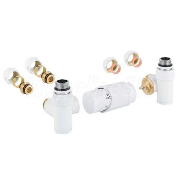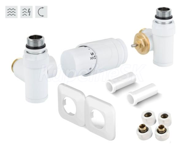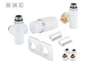 Rohová obojstranná (ľavá aj pravá) termostatická sada INTEGRATO vr. krycie rozety a 2 krycích trubičiek (plast) je určená na pripojenie radiátorov na rozvody TÚV s vývodom zo steny s rôznym rozstupom (krajné pripojenie). Súprava umožňuje priame osadenie elektrickej vykurovacej tyče. Nie je možné použiť pre priame napojenie zo zeme. Prívod je vždy na strane termostatickej hlavice.