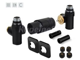 >>  Radiátory-Kotle-Kúrenie-Komíny  >>  Kúpeľňové a designové radiátory  >>  Pripojenie kúpeľňových radiátoro  >>  HOPA INTEGRATO termostatická sada univerzálny rohový ventil s plastovou rozetou Čierna