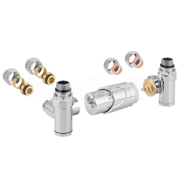 Rohová obojstranná (ľavá aj pravá) termostatická sada INTEGRATO vr. krycie rozety a 2 krycích trubičiek (mosadz) je určená na pripojenie radiátorov na rozvody TÚV s vývodom zo steny s rôznym rozstupom (krajné pripojenie). Súprava umožňuje priame osadenie elektrickej vykurovacej tyče. Nie je možné použiť pre priame napojenie zo zeme. Prívod je vždy na strane termostatickej hlavice.