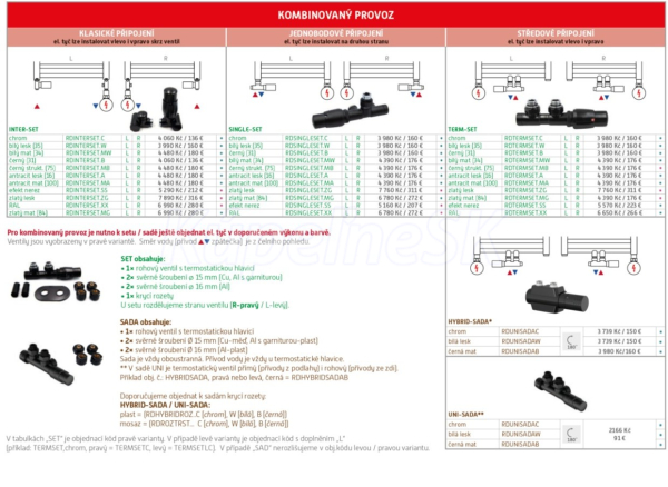 pre klasické radiátory s klasickým (krajným) pripojením: pre teplovodnú aj kombinovanú prevádzku