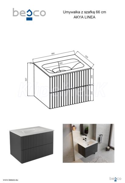 Populárny elegantný dizajn , kvalitné spracovanie a moderné frézovanie na čele šuplíka, to je naša nová séria AKYA LINEA . Súčasťou šuplíkov sú pánty s otváraním šuplíkov push-to-open (zatlačením na šuplík ho otvoríte, alebo zatvorte). Skrinky sa dodávajú vrátane elegantného umývadla z liateho mramoru a môžete si ich objednať s 3 farbami click-clack výpustí (chróm, biela a čierna matná). Možnosť dokúpiť bočnú skrinku a zrkadlo v rovnakej farbe.