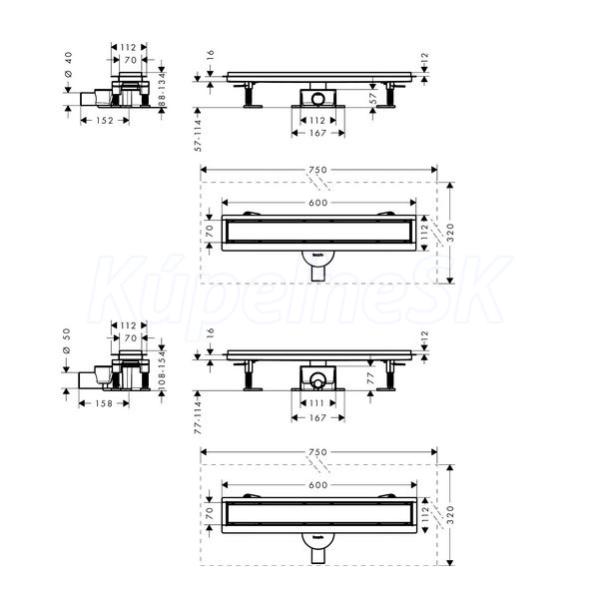 - výška vodného uzáveru: 30 mm, 50 mm