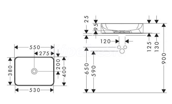 >>  Umývadlá  >>  Umývadlá na dosku  >>  Hansgrohe Xuniva Q keramické obdĺžnikové umývadlo na dosku 55x40 cm SmartClean Biele