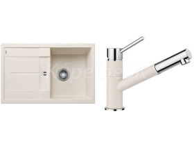 >>  KUCHYNE - Kuchynský tovar  >>  Kuchynské drezy  >>  AKCIOVÉ SETY (drez+batéria)  >>  Blanco set silgranit drez 527106 METRA 45 S biela soft a batéria 526953 KANO-S biela soft