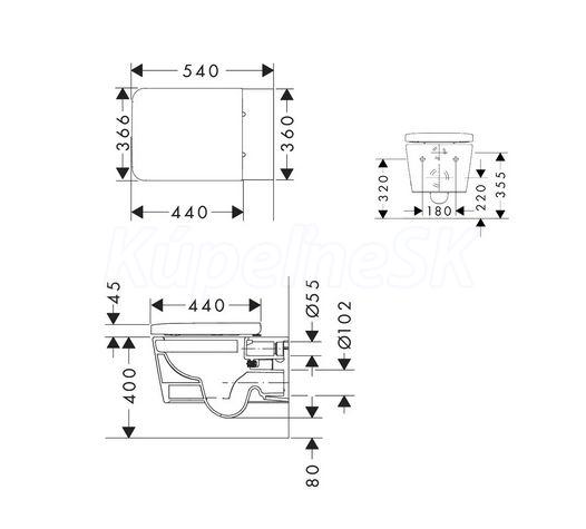 Hansgrohe EluPura Q závesné WC 54x36 cm,Aquaflush,HygieneEffect+WC sedátko SC QuickRelease