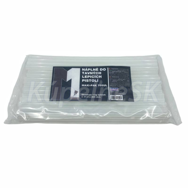 Tavná lepiaca tyčinka o priemere 11,2 mm dodávaná v sáčkovom balení 1 kg. Lepidlo je určené na lepenie roztavením v tavnej lepiacej pištoli, použitie na materiály podľa typu tavného lepidla. Balenie 30 cm tyčiniek obsahuje približne 34-35 ks.