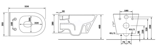 - na závesné WC s pripojovacími rozmermi podľa EN 33:2011