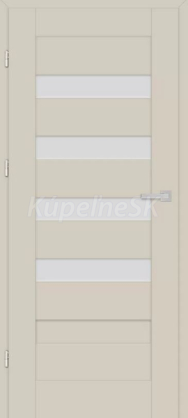 dva pánty (tretí pánt je k dispozícii za príplatok) skryté v dverovom krídle bez falca, lakované striebornou farbou (voliteľne k dispozícii v čiernej, zlatej alebo bielej farbe za príplatok); pánty sú dodávané a cenovo zahrnuté v dverovom ráme