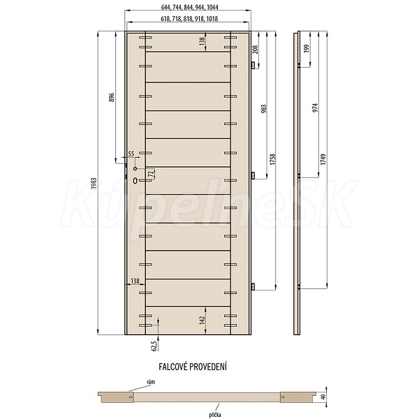 - voliteľné horné panely predlžujúce rám dverí, korunkové lišty a pilastry dostupné za príplatok