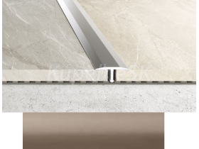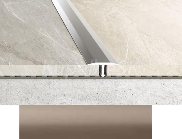 Hliníková prechodová lišta ku keramickým obkladom. Je určená na prechod keramických podláh, ktoré sú v rovine. Je vhodná je do kúpeľne, vstupných a priemyselných priestorov.