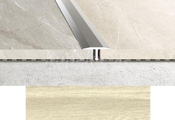 Hliníková prechodová lišta ku keramickým obkladom. Je určená na prechod keramických podláh, ktoré sú v rovine. Je vhodná je do kúpeľne, vstupných a priemyselných priestorov.