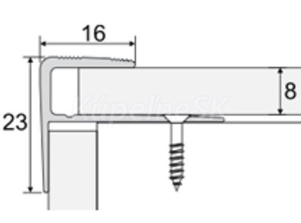 Skrutkovacia hliníková schodová lišta ukončovacia na laminát a plávajúce podlahy do hrúbky 8 mm.