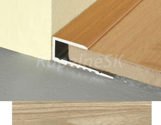 Hliníková ukončovacia lišta skrutkovacia, do ktorej sa zasunie plávajúca podlaha o hrúbke 7 mm alebo 8 mm. Lištu je možné osadiť pri pokládke plávajúcej podlahy, dodatočne to nie je možné.