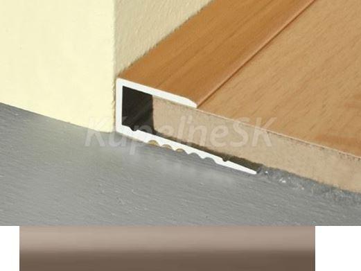 Hliníková ukončovacia lišta skrutkovacia, do ktorej sa zasunie plávajúca podlaha o hrúbke 7 mm alebo 8 mm. Lištu je možné osadiť pri pokládke plávajúcej podlahy, dodatočne to nie je možné.