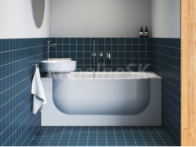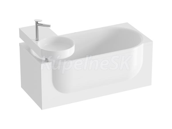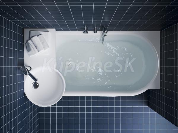 Ergonomicky tvarovaná vaňa ponúkne pohodlie aj tam, kde je miesta skutočne málo. Príjemne sa oprite, s umývadlom nad vaňou si kúpeľ vychutnáte aj v priestorovo úspornom riešení. Ľavý variant.
