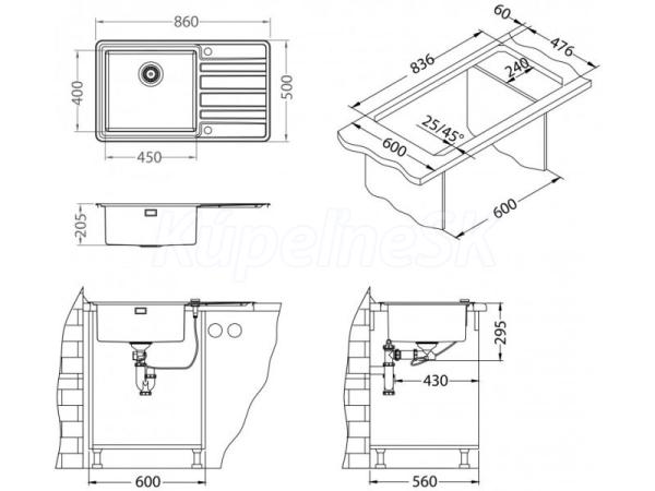 Inštalácia do skrinky o šírke 600 mm Vestavěný dřez s odkapní plochou