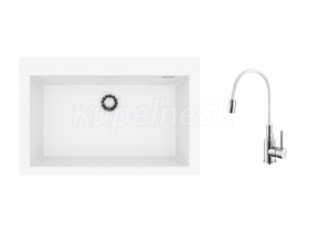 >>  KUCHYNE - Kuchynský tovar  >>  Kuchynské drezy  >>  AKCIOVÉ SETY (drez+batéria)  >>  Alveus SET granit drez Pure-G 40 so sifónom A10 Biela a batéria Mintas brúsená Nerez/Biela