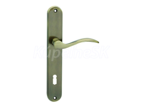 Obľúbené krivky interiérového kovania KRISTINA v kombinácii so štítom sú ideálne pre tradičné interiéry. Elegantný vlnovitý tvar tenkej úchopovej časti zaručuje vynikajúcu ergonómiu, rukoväť je vďaka svojmu zakriveniu vhodná pre veľké mužské aj menšie ženské ruky. Elegantný charakter kovania KRISTINA podporujú aj samotné farby - leštená mosadz aj brúsený bronz pôsobia nadčasovo a exkluzívne. Kolekcia KRISTINA je k dispozícii nielen vo verzii so štítom a rozetou, ktoré sa výborne hodia aj do moderných interiérov.