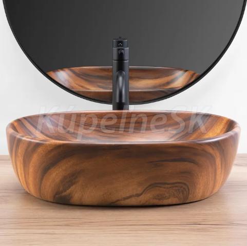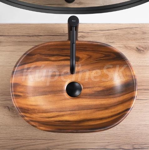 REA Amelia keramické oválne umývadlo na dosku 48x34,5 cm vzor Dreva matné U5060