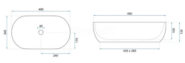 *Umývadlo má biele stopy pri výpuste, spôsobené výrobným natieraním, ktoré po namontovaní sifónu, zátky alebo odtoku sú neviditeľné a neovplyvňujú funkčnosť produktu.